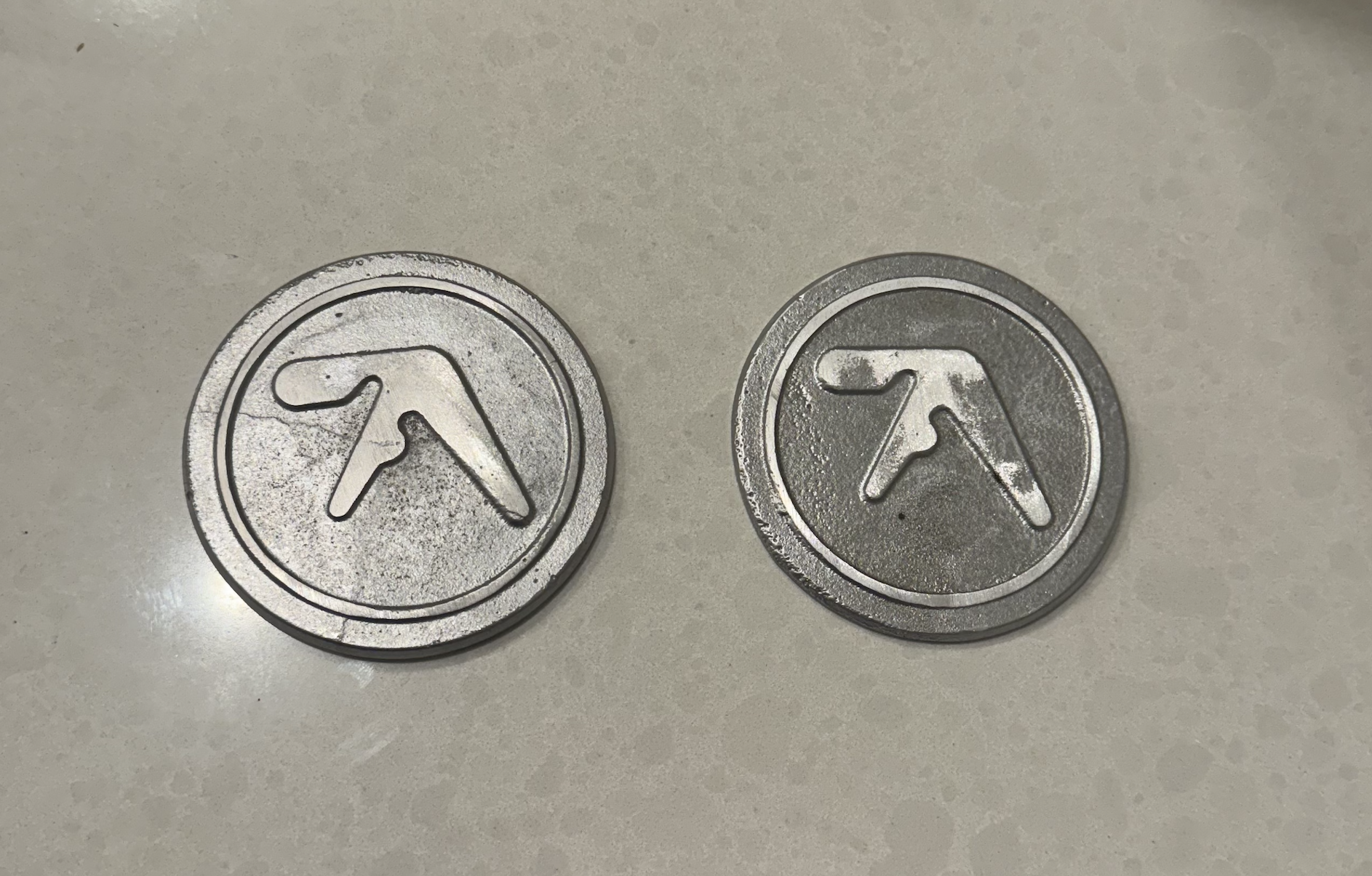 This mini project was started in AutoCAD, where I created a 3D model of a medallion by projecting an Aphex Twin graphic onto the front face. The 3D model was then converted to G-Code on MasterCam, which allowed for it to be printed out of wax. This wax figure was placed in treated “Nevada sand” that bonds together when exposed to carbon dioxide gas. The wax model was removed and the bonded sand mold was placed in the microwave for proper hardening. At this stage, the sand mold was prepared and ready to receive the molten aluminum.