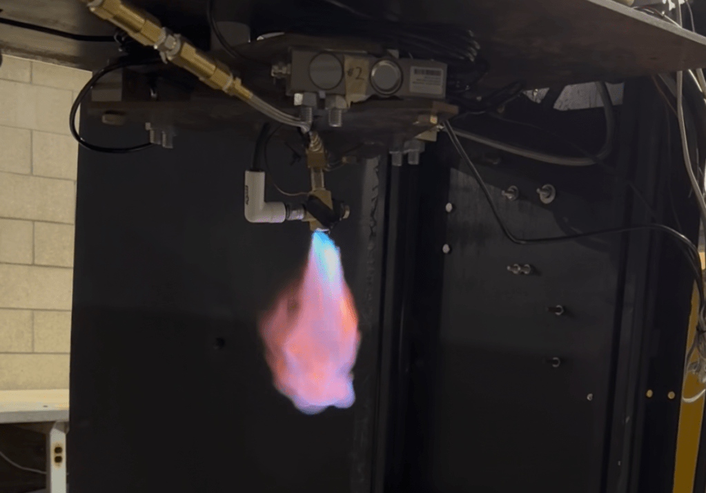 The first couple attempts at creating a flame weren’t perfect. For example, the following video shows a flame that was too large for our liking so we tuned the system by decreasing the pressure of the propane.
