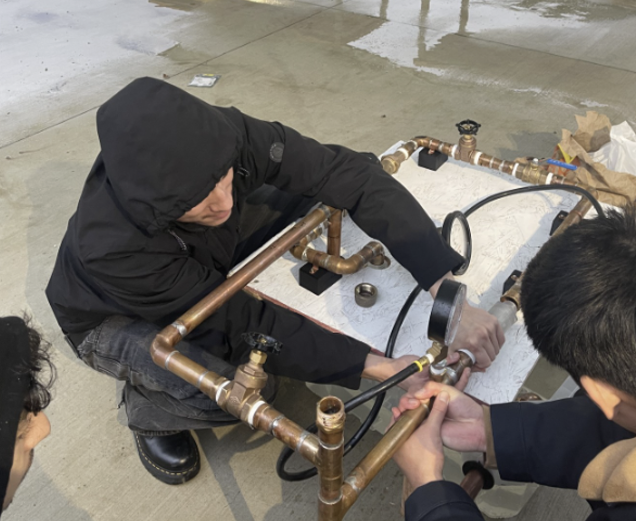As seen in the image, copper pipes were chosen, and they had to be soldered.